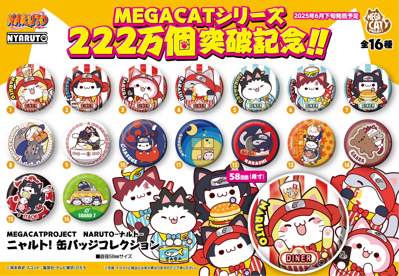 MEGA CAT PROJECT NARUTO Nyaruto! Metal Badge Collection (16pc per box)